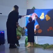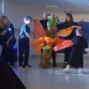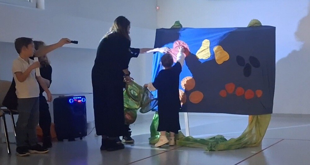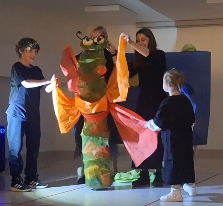 V drugi točki smo se predstavili z interaktivno gledališko predstavo Gosenica. Čeprav je bila zelo lačna, je jedla le zdravo in zrasla v prelepega metulja.